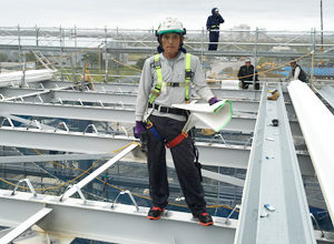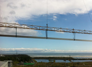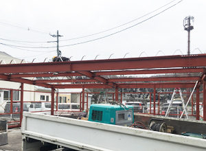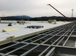様々な大型の物件の工事実績があります。当社の製品である「東北折板らくちん君」を駆使し、10万㎡以上の屋根葺きを短期間で納品する事にも成功しています。ソーラーパネルの運搬にも運用するなど、屋根工事業には革新的な運搬システムです。